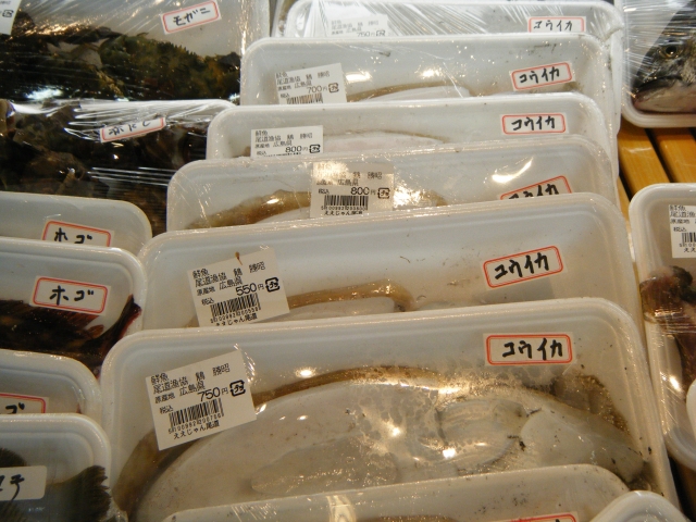タコ、イイダコ、クロイカ、ミミイカ、ゲンチョウ、ヒラメ、アマテカレイ、デベラカレイ、マコカレイ、